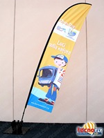 La TecnoFly 2008 S.r.l. fornisce svariati tipi di bandiere tra le quali quelle a sagoma di "pinna", comunemente chiamate bandiere a pinna o ad arco. Vengono costruite in diverse misure, utilizzando materiali di primissima qualità, per un prodotto finale altamente professionale e duraturo nel tempo. Sono complete di basamento metallico, bulloneria, asta fissa più asta flessibile in fibra di vetro, drappo stampato e custodia per il trasporto. Si adattano a tutti gli ambienti dove è necessario utilizzare sistemi di comunicazione versatili e leggeri, come inaugurazioni di negozi, fiere ed ogni tipo di manifestazione. Il drappo è stampato su Poliestere Nautico Alta Tenacità da 110 gr/mq in tecnica digitale, e le rifiniture sono realizzate con macchina da cucire a doppi aghi paralleli, punto all'inglese ribattutto con fili di robusto poliestere. Vengono vendute a coppia o multipli di due pezzi. Smontate possono essere riposte tranquillamente nel bagagliaio di un'auto utilitaria. Le bandiere ad arco o pinna commercializzate dalla TecnoFly 2008 Srl sono della tipologia con struttura in vetroresina, con raccordi in alluminio lavorato finemente al tornio. Queste bandiere sono il giusto compromesso tra un prodotto commerciale e uno di qualità.