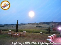 Una splendida serata quella del 2 Luglio 2016 presso l'incantevole tenuta di Poggio alle Talpe in provincia di Pisa per la cena di un matrimonio. Per l'occasione TecnoFly2008 Srl, ingaggiata dal noto Del Carlo Catering di Pisa, ha installato una stupenda luna aerostatica ad elio del diametro di 250 cm sospesa in aria ad oltre dieci metri da terra. La Luna aerostatica ha illuminato con i suoi ben 4000 Watt di potenza oltre diecimila metri quadri di terreno, donando una luce lunare, morbida, diffusa, omogenea, a 360° e non abbagliante. Il pallone è stato installato nel tardo pomeriggio, quando è cessato il vento termico che per tutto il pomeriggio aveva soffiato sul caratteristico poggio. Una location spettacolare, una totale immersione nella natura nelle rotondeggianti colline pisane. Ancora una volta una serata Lighting Crew Service, all'insegna dell'eleganza e della professionalità, che TecnoFly2008 sa offrire ai suoi clienti. Nello svolgimento della serata sono stati installati anche due AirLux Cono 500 a sorpresa, per completare l'arredamento luminoso del meraviglioso giardino antistante la villa secolare. Il Lighting Crew Service è un servizio svolto unicamente dalla TecnoFly2008 Srl di Grosseto, e consiste nel noleggio di palloni da illuminazione (Lighting Balloons) con presidio costante. Il presidio di un operatore è indispensabile, poiché questi palloni sono degli strumenti tecnici delicati che non possono essere lasciati incustoditi. Un operatore L.C.S. (Lighting Crew Service) esegue il sopralluogo tecnico sul luogo dell'installazione, sceglie i punti migliori dove installare i palloni per la resa ottimale dell'illuminazione nel rispetto della sicurezza di terzi, presiede per tutta la durata dell'illuminazione e infine rimuove le strutture. Qui di seguito mostriamo una serie di immagini dell'installazione e del risultato finale. Per info e costi non esitate a chiamare al 347-5900124, oppure inviate una e-mail a info@tecnofly2008.com.